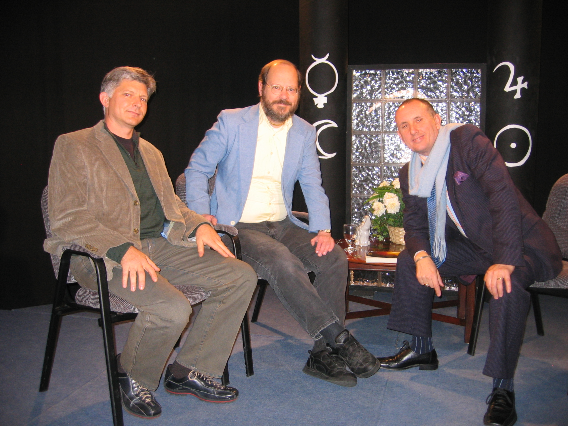 On March 9, 2006, Robert Taylor hosted on his Grosse Pointe Cable (in Michigan) television show called "Out of the Ordinary and Into the Extraordinary" with both Stephen Knapp and George Vutetakis about the new VFA book, "Vedic Culture: The Difference it can Make in Your Life". All three are contributing authors to the book and spent the whole half-hour show speaking about it and the ways Vedic culture can improve the lives of all who participate in it. George is also a famous chef in the area, and spoke about the Yoga of cooking. Below is a view of them on the set of the show. Robert is on the right, Stephen in the middle, George on the left.